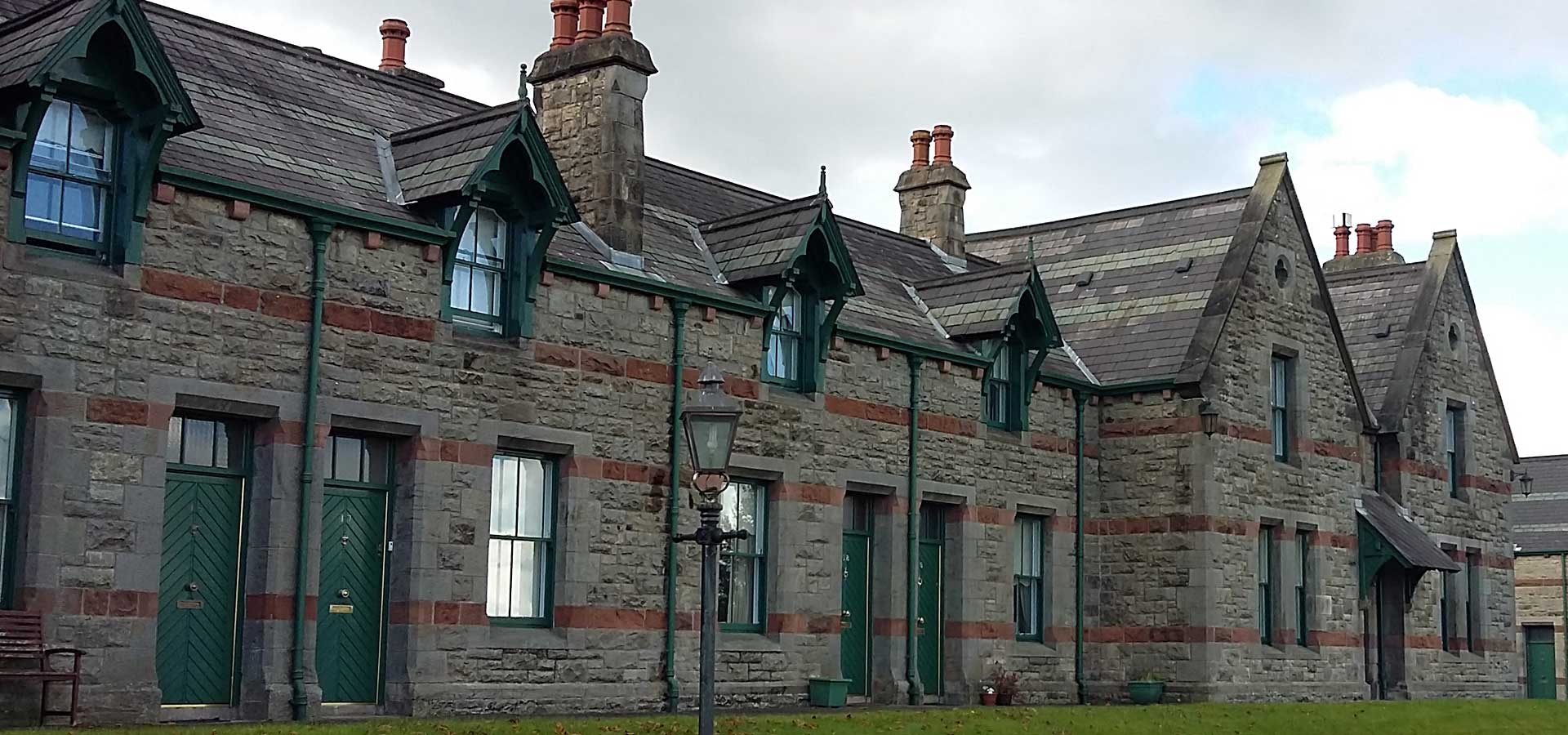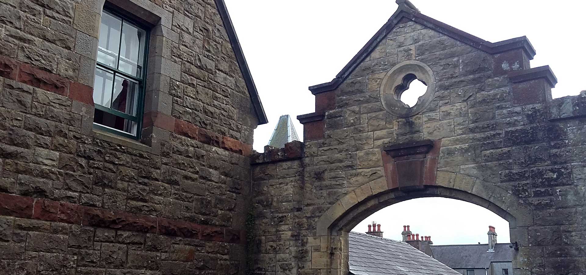 Although the overall theme and layout of buildings at each complex is broadly similar, the stone and brick used in their construction varied from site to site dictated by the locally available raw material. Materials varied with the use of granite in Stillorgan, complimented by bands of red brick and occasional yellow brick and red sandstone. Limestone was used in Dungannon and in Armagh with sandstone bands and window mouldings very evident.