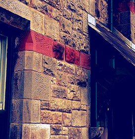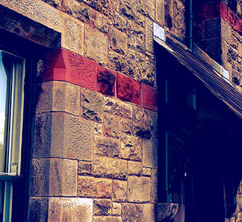 Greywacke dominates Killough with occasional basalt being used. As with the other complexes, sandstone for ornamental bands and window mouldings were also utilized. While sandstone was used for decorative purposes and window surrounds at Carrickfergus, much of the structure of the complex was built in red brick that is now cement rendered.
